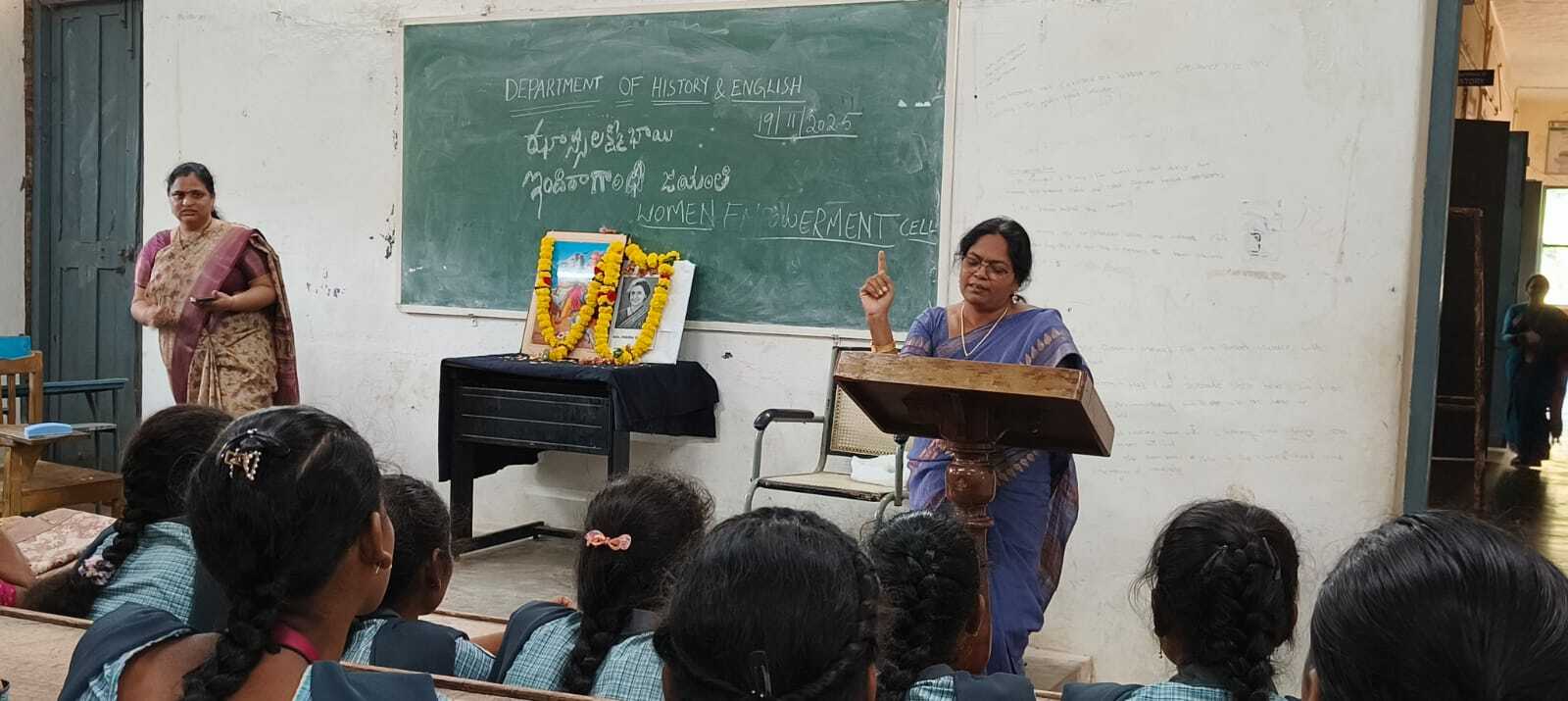 Rajahmundry Government College (A) Date: 19-11-2025 Organized by the Department of History under the supervision of Principal Dr. Ramachandra R.K. and Vice Principal Sri Ramamurthy, the Department of History proudly celebrated the birth anniversary of two legendary women, Rani Lakshmi Bai and Smt. Indira Gandhi, who shaped the history of India with their courage, leadership and patriotism. The program began with a floral tribute to Rani Lakshmi Bai and Smt. Indira Gandhi, who symbolized courage and sacrifice in India's first war of independence (1857). Principal Dr. Ramachandra R.K. addressed the gathering, emphasizing how the fearless spirit, extraordinary leadership and their role as an inspiration to women for generations, the two leaders symbolize women empowerment, resilience and national pride.