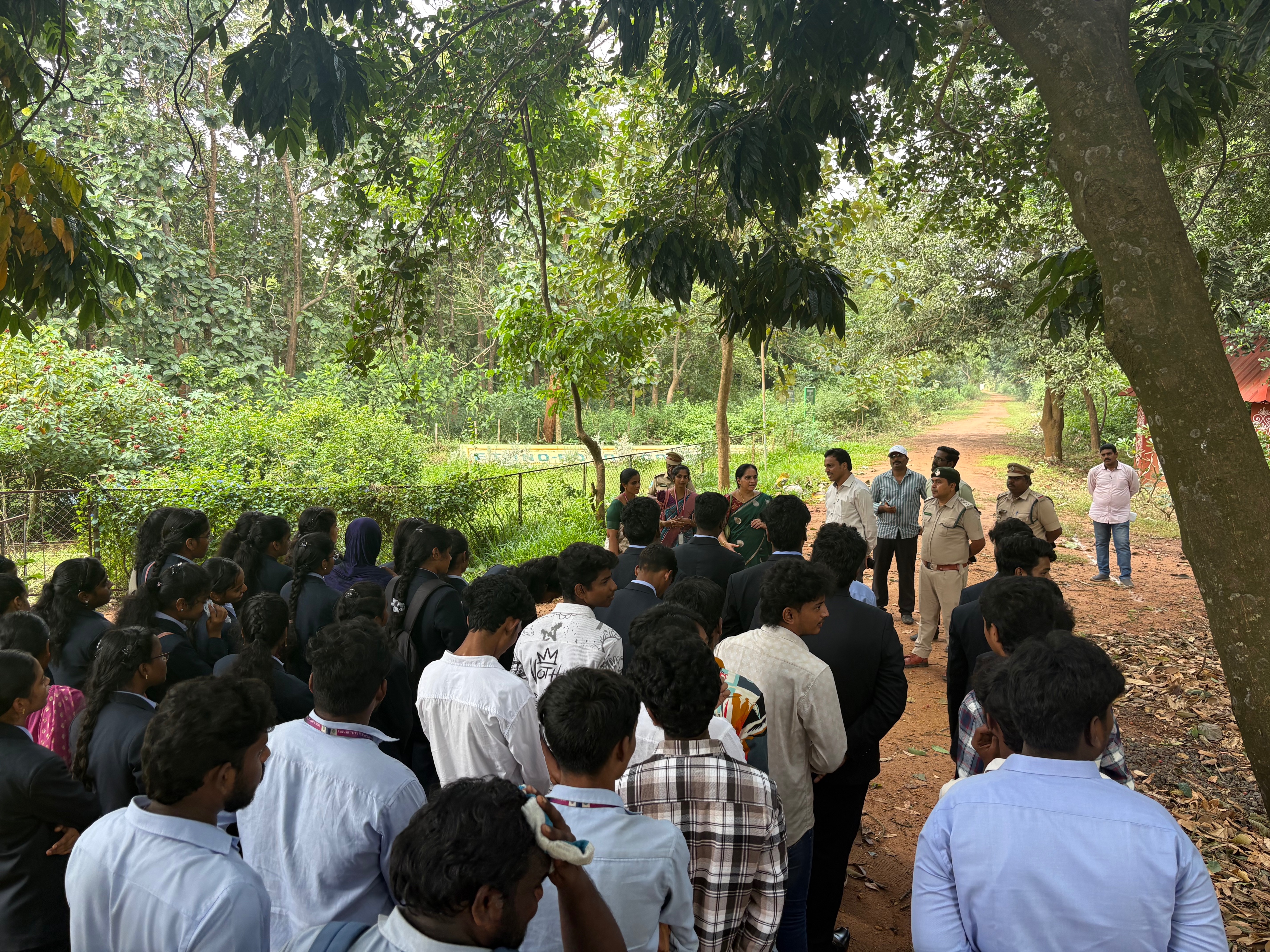 The Department of BBA (Hons.) organized a field-based guest lecture for 40 students at Pushkaravanam, Rajahmundry on 4/11/25. Sri R. Srinivas, State Silviculturist, Regional Forest Research Centre, Rajahmundry, delivered an informative and engaging session on “Development, Management, and Care of Forests.”