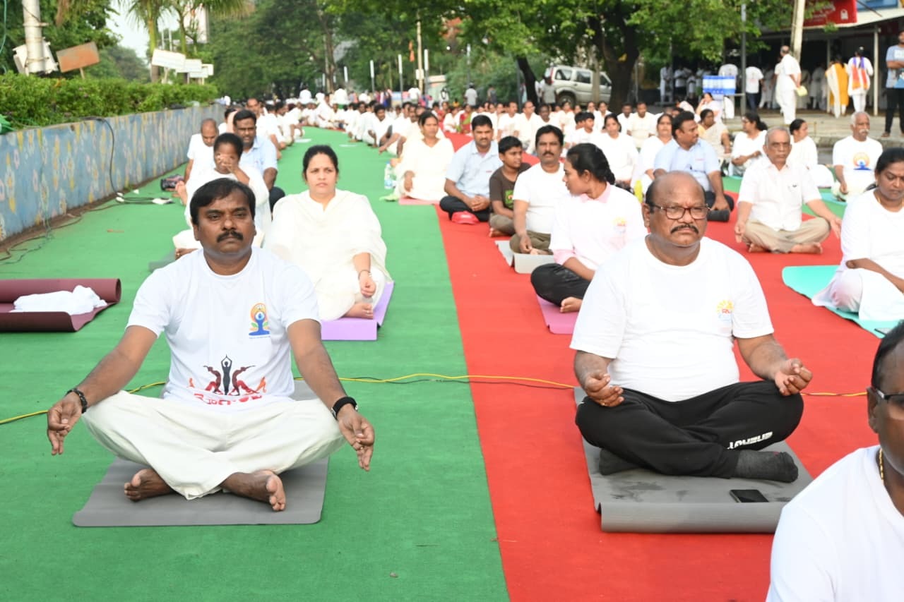 Among the participating institutions, Government College (Autonomous), Rajahmundry made a remarkable contribution, with over 3,000 students and staff members, including 200 NCC cadets, actively participating in the yoga session. The participants followed the Common Yoga Protocol, which included asanas, pranayama (breathing techniques), and dhyana (meditation), fostering both physical and mental wellness.