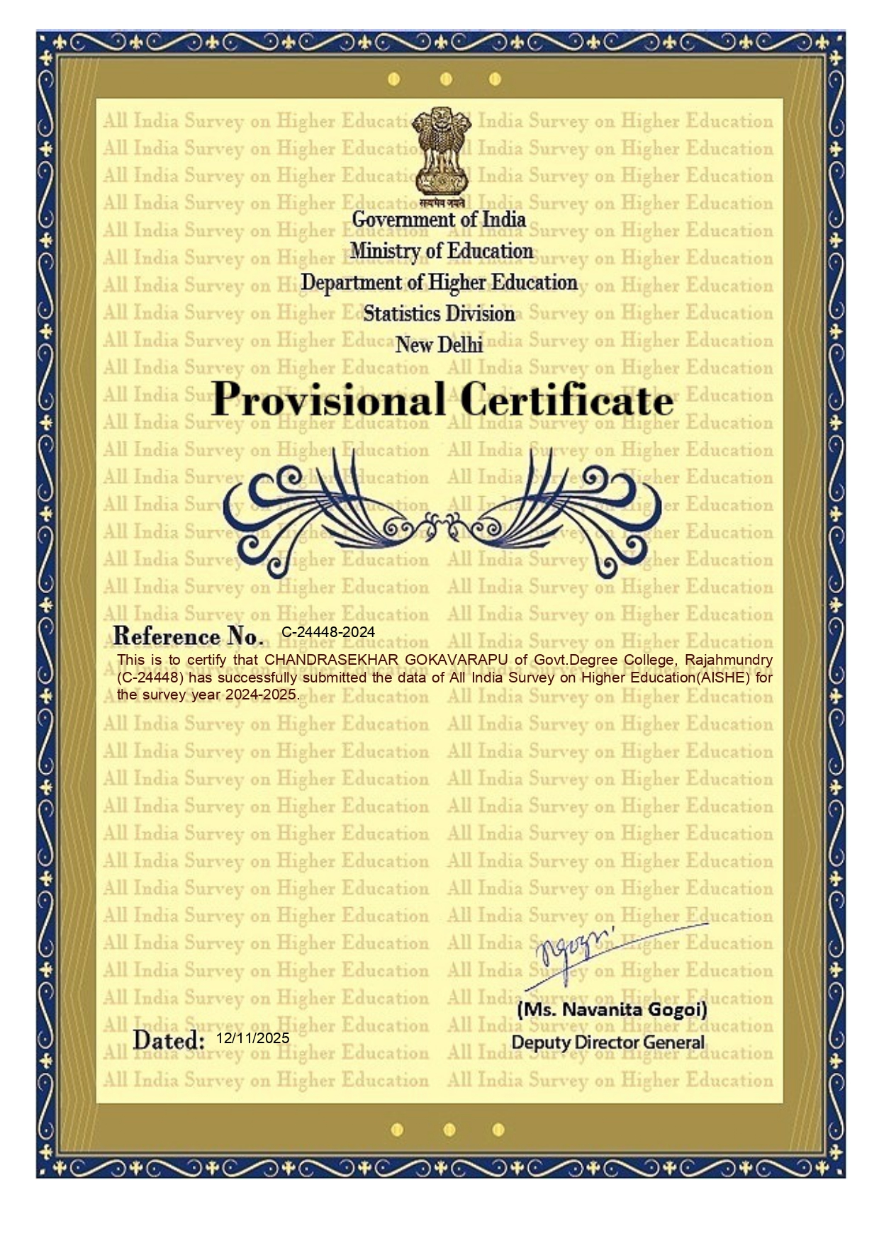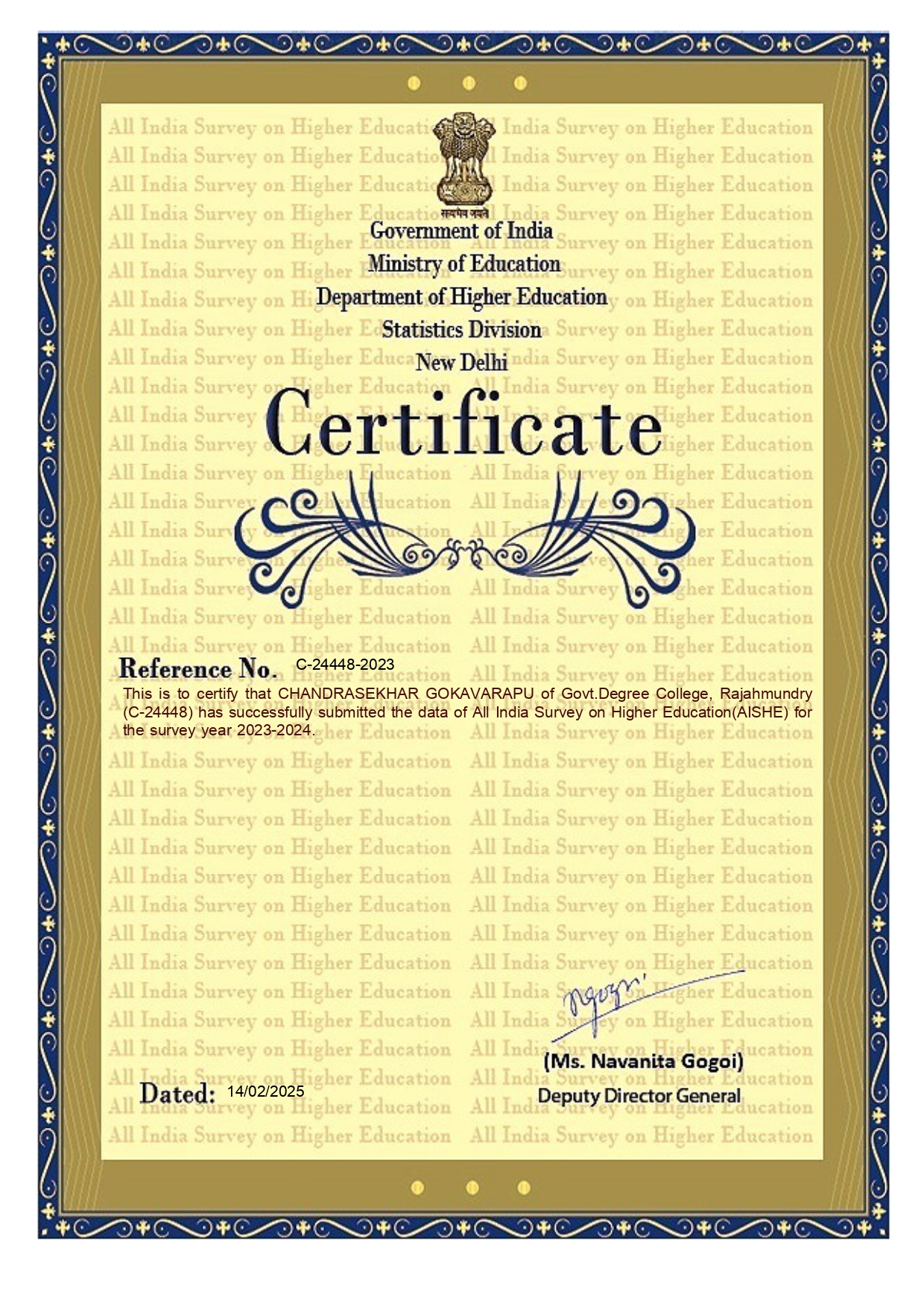 - AISHE Certificate