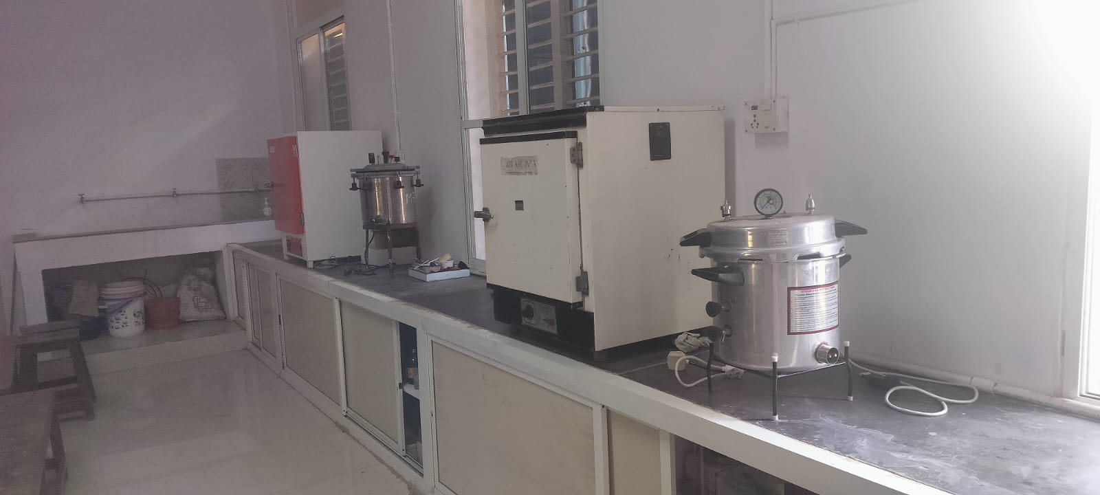 Microbiology Lab was established by the Department of Botany in the year 1998. The Laboratory is equiped with all necessary instruments , chemicals and other facilities like water and LPG facility. The basic equpments like Autoclave, Incubators, Hot air oven, Laminar air flow, centrifuge, Microscopes, Fridge ect to perform Practicals at UG level. Recently the laboratory flooring and other physical facilities were renovated to meet the standards of Microbiology Laboratory.