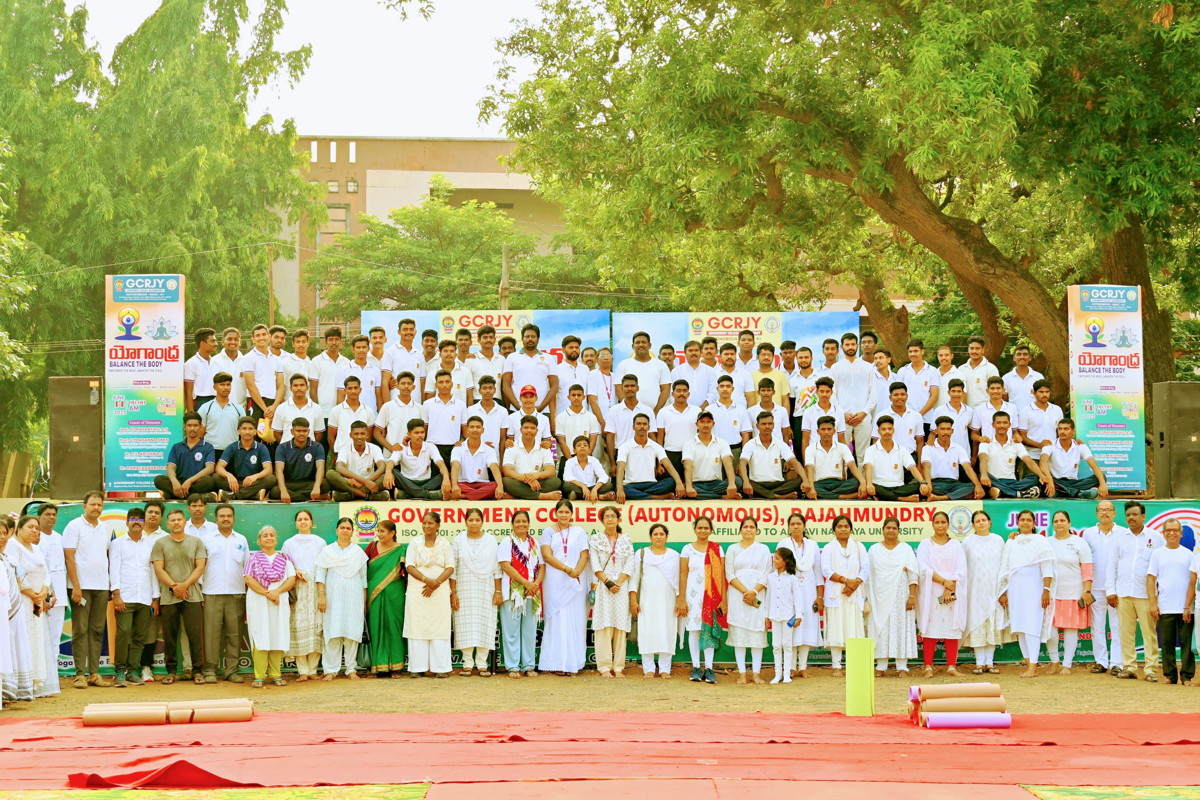 As part of the nationwide celebrations of International Yoga Day on June 21,the Department of Physical Education at Government (A) Arts College, Rajahmundry, actively participated in the month-long Yoga Mahotsav initiated by the Government of Andhra Pradesh. This initiative, declared from May 21 to June 21 as “Yoga Month”, aimed to promote physical and mental wellness among students and staff, in alignment with the vision of our Honourable Prime Minister Shri Narendra Modi, who graced the state-level celebration in Visakhapatnam alongside the Chief Minister and other dignitaries.