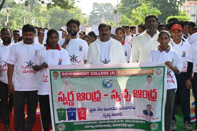 As per the directives of the Government of Andhra Pradesh, every Saturday, under the leadership of Dr. Ramachandra RK, Principal of Government Autonomous College, Rajahmundry, the *Swarna Andhra – Swachh Andhra* program is being organized with great enthusiasm on every third Saturday of the month.