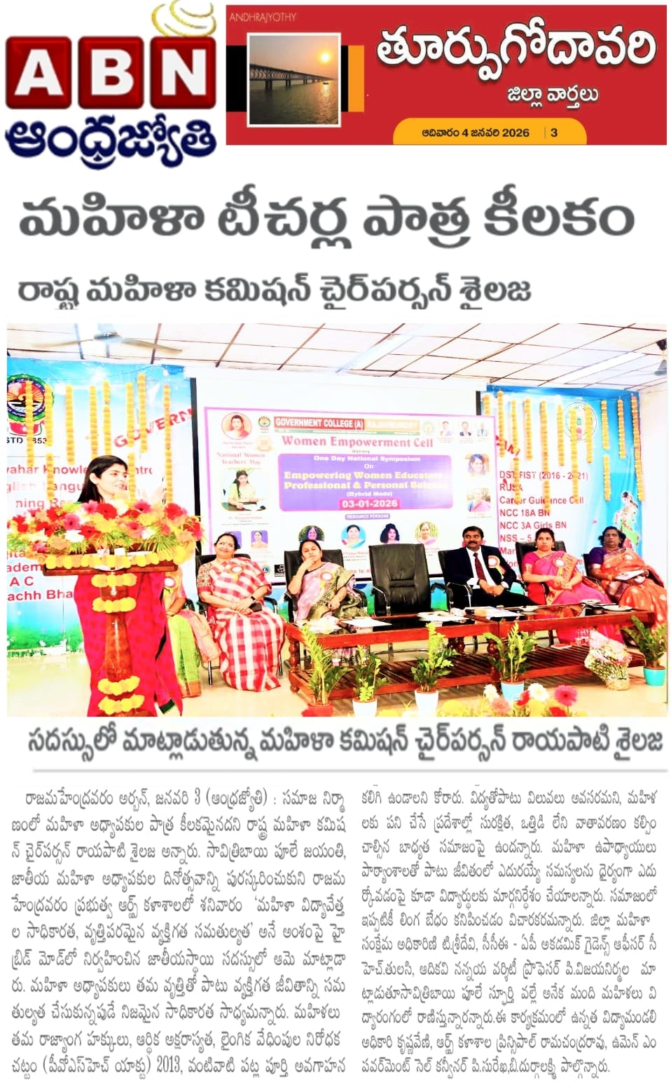 National Symposium on Empowering Women educators:Professional and Personal balance - January 03, 2026