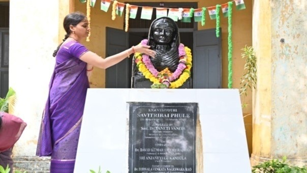 The birth anniversary of Savitribai Phule and National Women Teachers’ Day was celebrated with great enthusiasm at Government Arts College (A), Rajahmundry, on January 3, 2024. On this occasion, Principal Dr. Ramachandra Rao garlanded the statue of Savitribai Phule on the campus and emphasized that while women are leading in various fields, research remains a challenging area that needs more female representation. Dr. B. Bhavani from the Women Empowerment Cell highlighted that women in every field have been supported by men, just as Jyotirao Phule supported Savitribai Phule, fostering a healthy society. Dr. P.V.V. Satyanarayana, Telugu Department in-charge, noted that women have brought significant changes to society and emphasized the need for a cultural shift led by women. Dr. Sita Mahalakshmi from the Politics Department and Dr. J. Suresh from the Chemistry Department also shared insights on Savitribai Phule's contributions. The event was attended by all teaching and non-teaching members, who graced the occasion with their presence.