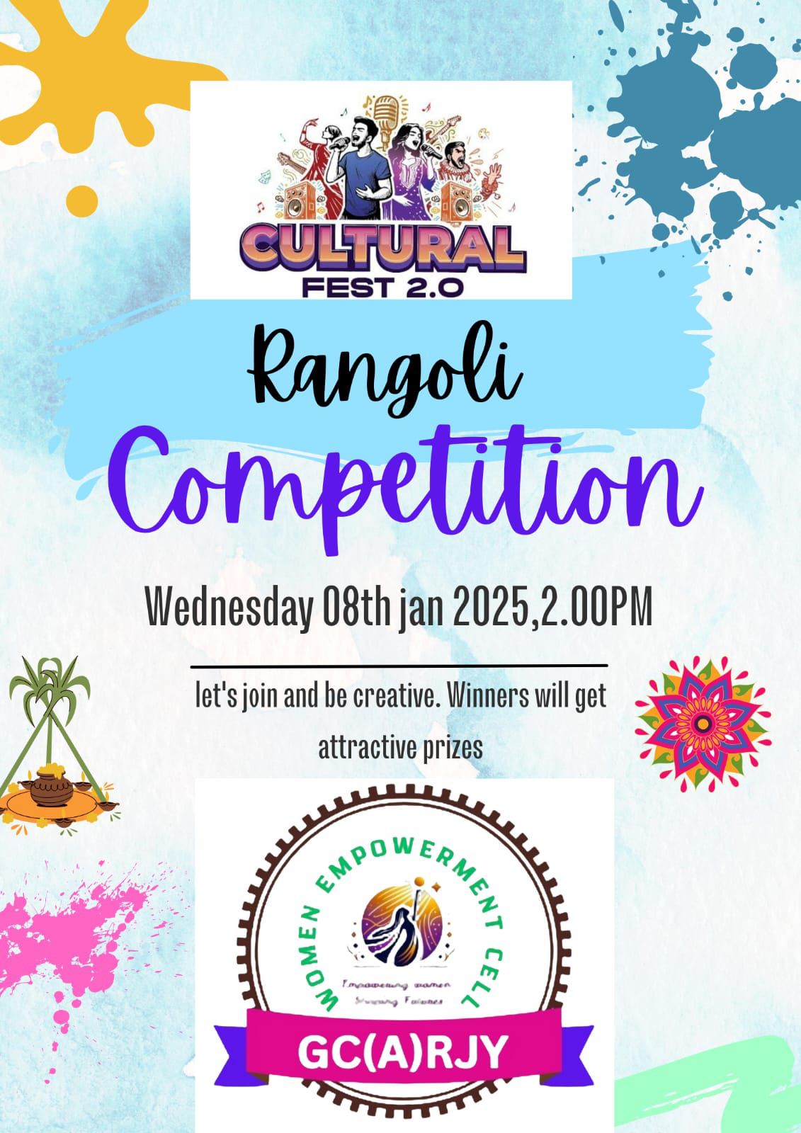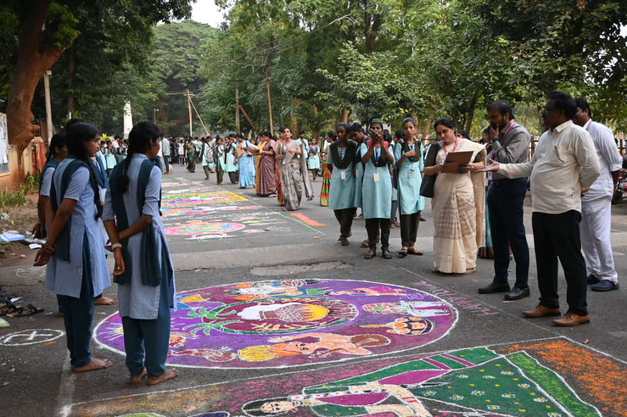 The Sankranthi Sambaralu Rangoli Competition organized by the Women Empowerment Cell is an event designed to celebrate the festival of Sankranthi, which marks the harvest season and is a time of joy, prosperity, and new beginnings. Sankranthi is a vibrant and culturally significant festival celebrated across India, especially in South India. The event not only highlights the rich traditions and customs associated with the festival but also provides a platform for women to showcase their artistic talents, creativity, and cultural heritage.